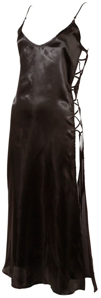 Met deze zwarte lange negligé zal je partner je zeker niet kunnen weerstaan. De zijkanten van de negligé zijn open en worden bij elkaar gehouden door een zwarte lint die kruiselings door de stof is geregen. Hierdoor is de pasvorm ook wat aan te passen naar je eigen voorkeur.